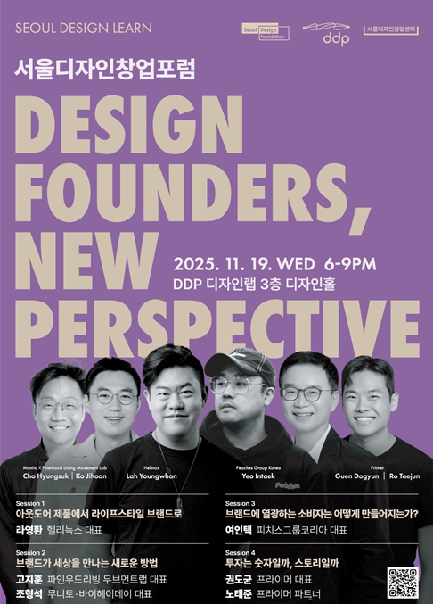 [메이저뉴스]서울디자인재단은 11월 19일 오후 6시, DDP 디자인랩 3층 디자인홀에서 '2025 서울디자인창업포럼(Seoul Design Startup Forum 2025)'을 개최한다. 이번 행사는 국내 유일의 디자인 창업 전문 포럼으로, ‘디자인이 창업의 미래를 바라보는 관점, 감각이 전략이 되는 순간’을 주제로 디자인 창업가들이 자신만의 시선으로 시장을 읽고, 감각을 전략으로 전환하여 브랜드를 성장시켜온 실제 사례를 공유한다.