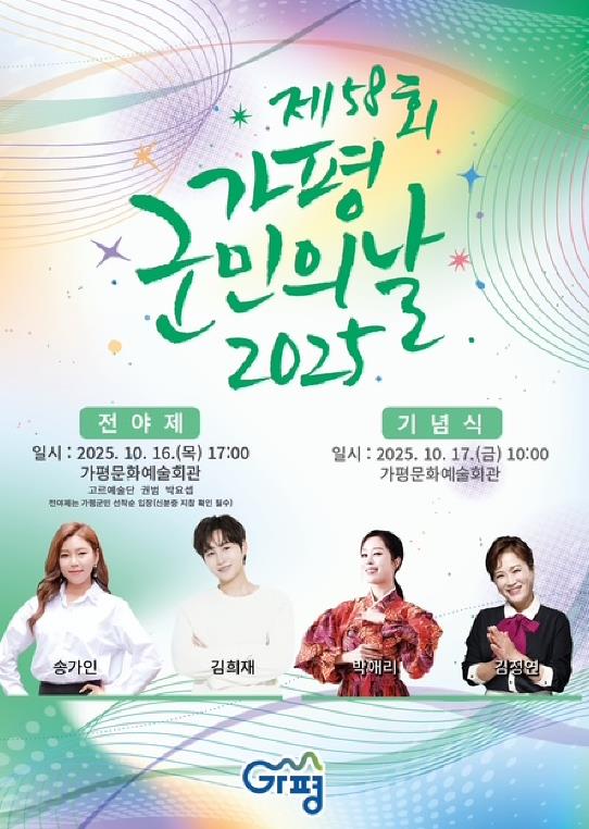[메이저뉴스]가평군은 오는 16일 오후 5시, 새롭게 리모델링을 마친 가평문화예술회관에서 ‘제58회 가평군민의 날 전야제’를 개최한다. 이번 행사는 ‘다시, 가평으로’를 슬로건으로 내세워 수해 극복과 지역 재도약을 기원하며 군민 화합의 의미를 담아 열린다.