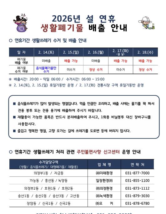 | ▲ 의정부시, 설 연휴 생활쓰레기 관리 대책 추진 |