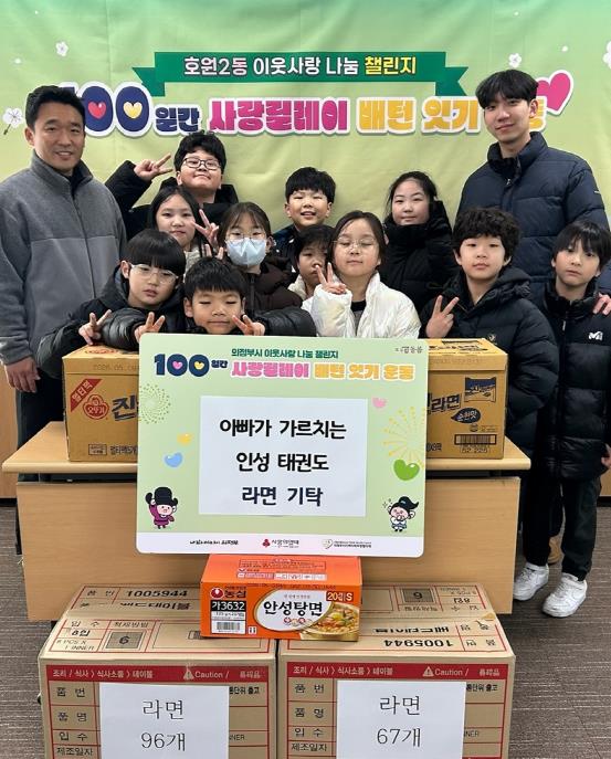 [메이저뉴스]의정부시 호원2동주민센터는 12월 31일 아빠가 가르치는 인성태권도 수련생들이 정성을 모아 취약계층을 돕기 위한 라면 310개를 기탁했다고 전했다.