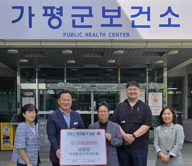 [메이저뉴스]가평군 가평읍 소재 새희망마취통증의학과의원이 집중호우로 피해를 입은 주민들을 돕기 위해 성금 100만 원을 가평군에 기탁했다.