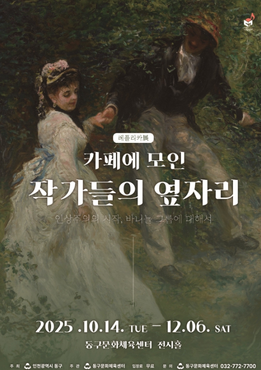 [메이저뉴스]인천 동구문화체육센터 전시홀에서는 오는 12월6일까지 인상주의를 대표하는 세 작가의 레플리카전 '카페에 모인 작가들의 옆자리'을 진행한다고 밝혔다.