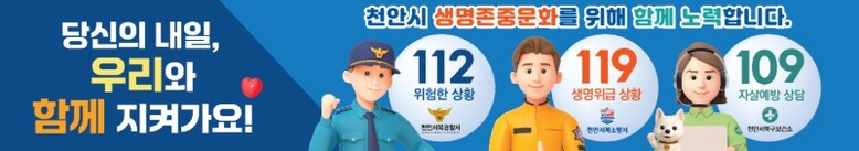 한편, 삶에 희망이 보이지 않을 때는 고민하지 말고 자살예방 상담전화, 천안시 서북구자살예방센터, 동남구자살예방센터로 연락하면 전문적인 상담과 도움을 받을 수 있다.