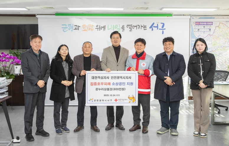 강범석 서구청장은 “이번 여름 호우피해 재난지원금 대상에서 제외된 사업자 미등록 상인분들에게 대한적십자사의 도움으로 따뜻한 나눔의 마음을 전하게 되어 기쁘다”라며 “자연 재난으로부터 관내 구민의 안전 및 재산을 보호하도록 지속적으로 노력하겠다”라고 밝혔다.