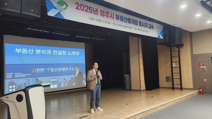 [메이저뉴스]영주시는 지난 23일 148아트스퀘어 공연장에서 관내 개업 및 소속공인중개사를 대상으로 ‘부동산중개업 종사자 실무교육’을 진행했다.