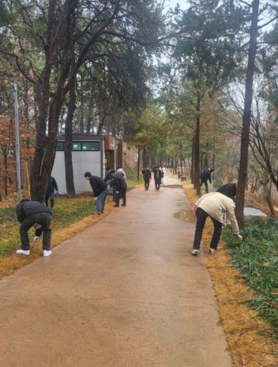 | ▲ 금산군청 농정과 직원들의 비호산 등산로 환경정화 모습 |