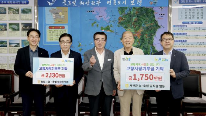 보령시 농축협 임직원은 서천군에 2,130만 원을, 서천군 농축협 임직원은 보령시에 1,750만 원을 기부했다.