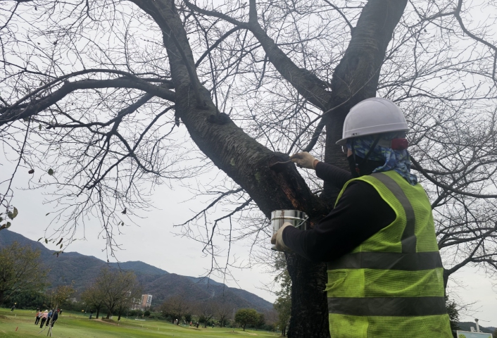 이번 사업은 파크골프장 내 보전 가치가 높은 대형수목 중 공동(空洞, cavity) 발생 및 도복 위험이 확인된 수목 8주를 선정해 시행됐으며, 수목의 생명 연장뿐 아니라 이용객 안전 확보와 경관 가치 보존이라는 구체적인 목표를 달성하고자 추진됐다.