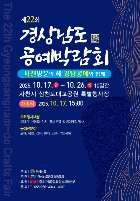 [메이저뉴스]경상남도는 10월 17일부터 26일까지 10일간 사천시 삼천포대교공원 특별행사장에서 ‘제22회 경남 공예박람회’를 개최한다고 밝혔다.