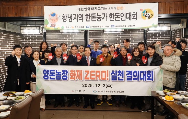 이에 군은 양돈농장의 화재 예방 분위기 확산과 농가 경각심 제고를 위해 지난 3일 (사)대한한돈협회 창녕지부와 함께 ‘양돈농장 화재 예방 실천 결의대회’를 개최했다. 이번 결의대회는 창녕지역 한돈농가 한돈인 대회 행사와 연계 실천 의지를 다짐하며 화재 원인과 예방 요령을 안내했다.