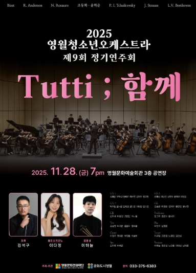 [메이저뉴스](재)영월문화관광재단은 오는 11월 28일 오후 7시, 영월문화예술회관 3층에서 ‘2025 영월청소년오케스트라 제9회 정기연주회 'Tutti : 함께'’를 개최한다고 밝혔다.