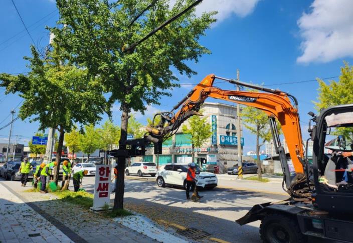 이번 작업은 가로수관리원과 전문 장비를 활용해 열매가 땅에 떨어지기 전 진동수확기와 열매 수거망으로 일괄 채취·처리하는 방식으로 진행된다.