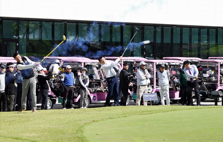 | ▲ - 27일 단장면 에스파크컨트리클럽에서 열린 제30회 밀양시장배 시민골프대회에서 내빈들이 시타를 하고 있다. |