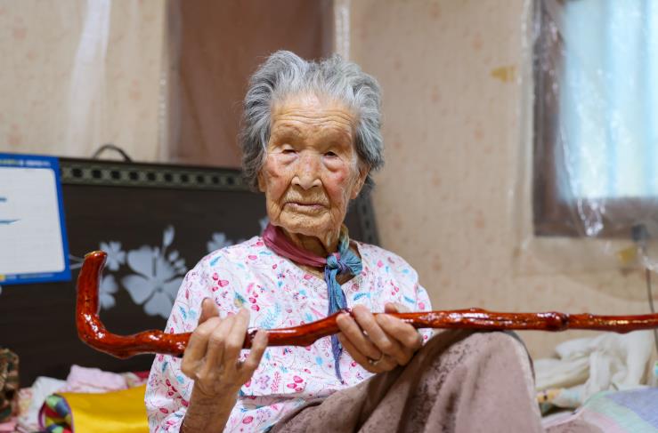 [메이저뉴스]영암군이 30일 100세 어르신 가정을 방문해 장수와 존경의 뜻을 담은 지팡이 ‘청려장’을 전달하고 건강을 살폈다.