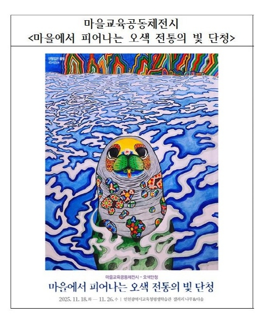 [메이저뉴스]인천광역시교육청평생학습관은 11월 18일부터 26일까지 평생학습관 2층 갤러리 나무와 다솜에서 ‘마을에서 피어나는 오색 전통의 빛 단청’ 전시를 개최한다.