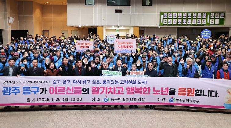 [메이저뉴스]광주 동구는 26일 어르신들의 건강하고 행복한 사회참여를 지원하기 위한 ‘2026년 노인 일자리 및 사회활동 지원사업 발대식’을 열고, 올해 노인 일자리 사업의 본격적인 시작을 알렸다고 밝혔다.