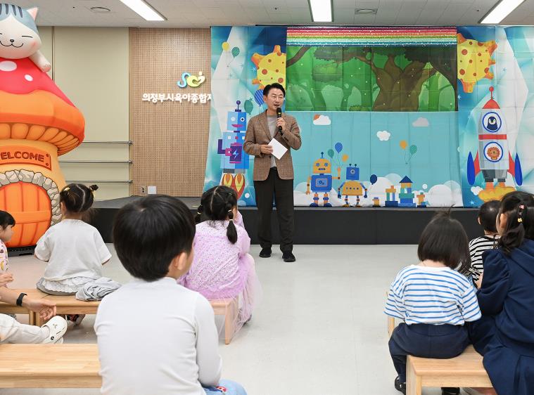 | ▲ 김동근 시장이 10월 18일 ‘유-잼데이 U-jjam Day(의정부시 영유아 재미 놀이터)’ 행사에 참석해 인사말을 하고 있다. |