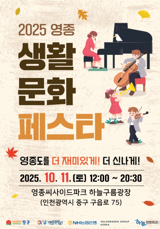[메이저뉴스] (재)인천중구문화재단은 오는 10월 11일 영종씨사이드파크 하늘구름광장(인천 중구 구읍로 75)에서 ‘2025 영종 생활문화 페스타’를 개최한다고 밝혔다.