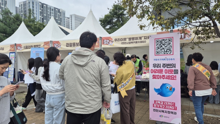 [메이저뉴스]천안시는 지난 18~19일 이틀간 천안종합운동장에서 열린 ‘2025 빵빵데이 천안’ 축제 현장에서 숨은 위기가구 발굴을 위한 ‘우리이웃, 빵빵하게 지켜요’ 행복키움지원단 홍보부스를 운영했다.