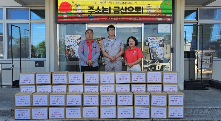 [메이저뉴스]한국타이어앤테크놀로지 금산공장은 다가오는 추석명절을 맞아 지난 23일 금산군 제원면에 선물키트 50상자를 기탁했다.