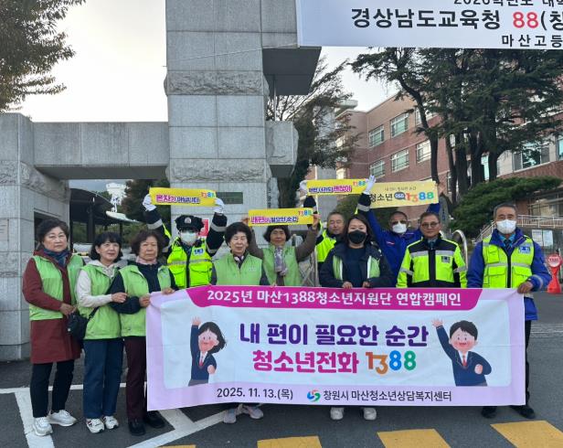 [메이저뉴스] 창원특례시는 수능일인 13일 오후 4시부터 관내 수능시험장 4곳과 용호동·중앙동·상남동·진해 용원 등 청소년 밀집지역에서 ‘1388 청소년지원단 연합캠페인’을 실시했다고 밝혔다.