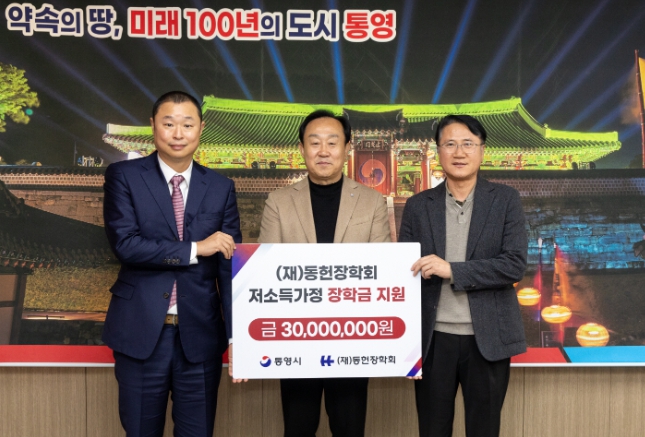 [메이저뉴스]재단법인 동헌장학회는 지난 9일 통영시에 저소득가정 학생의 학업 지원을 위한 장학금 3,000만원을 기탁하며 지역 인재 육성에 따뜻한 뜻을 전했다.