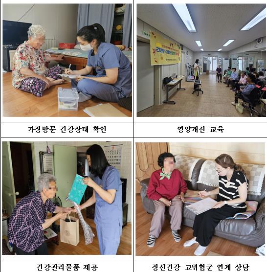 지역사회와 협력해 진행한 가정방문에서는 활력징후 측정, 복용약 확인, 폭염 예방 교육과 물품 배부가 이뤄졌으며, 치매와 우울 선별검사, 영양개선 교육,지팡이 지원 등 맞춤형 건강관리가 제공됐다.