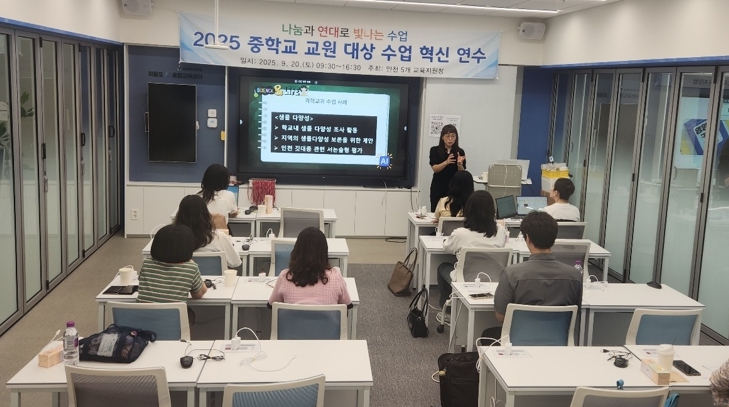 [메이저뉴스]인천광역시교육청은 20일 제물포AI융합교육센터에서 관내 5개 교육지원청 주관으로 ‘2025 중학교 교원 대상 수업혁신 연수’를 운영했다고 밝혔다.