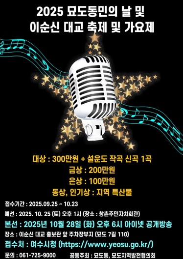 ▲ ‘2025 묘도동민의 날 및 이순신대교 축제 및 가요제’ 포스터 |