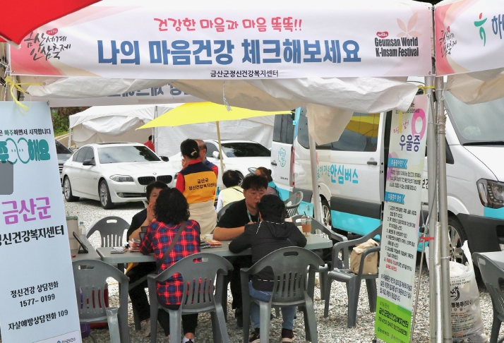 [메이저뉴스]금산군보건소와 금산군정신건강복지센터는 오는 28일까지 금산세계인삼엑스포광장에서 열리는 제43회 금산세계인삼축제 현장에서 방문객들을 대상으로 마음안심버스를 운영하고 있다.