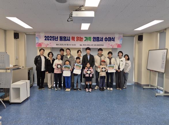 [메이저뉴스]통영시는 지난 12일 ‘2025년 통영시 책 읽는 가족 인증서 수여식’을 개최하고, 꾸준히 도서관을 이용하며 독서 생활화 정착에 기여한 가족들에게 감사의 뜻을 전했다.