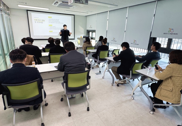 지난 14일 다옴나눔센터에서 열린 사업설명회에서는 청년창업기업 관계자 10여 명이 참석했다. 강남대학교 산학협력단 엄주환 교수가 설명회 진행을 맡아 사업 취지와 추진 일정, 지원 내용, 선정 절차 등을 안내해 예비 참가기업들의 이해를 도왔다.