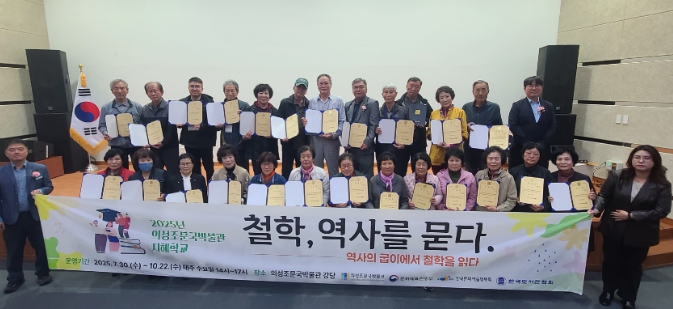 [메이저뉴스]의성군은 10월 22일 문화체육관광부와 한국문화예술위원회가 주관하는 2025년 ‘지혜학교’ 프로그램의 마지막 강연 및 수료식을 의성조문국박물관 강당에서 성공적으로 마쳤다고 밝혔다.