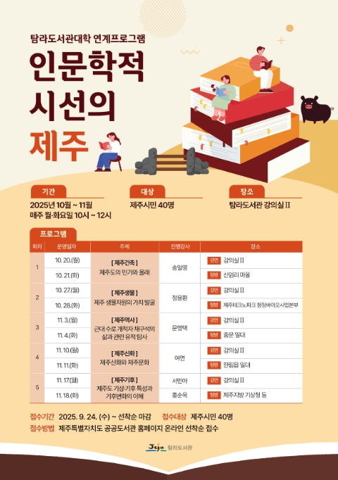김봉석 탐라도서관장은 “이번 프로그램을 통해 제주의 다양한 문화자원을 재조명하고, 제주라는 공간에 담긴 새로운 매력을 발견하는 기회가 되길 바란다”고 말했다.
