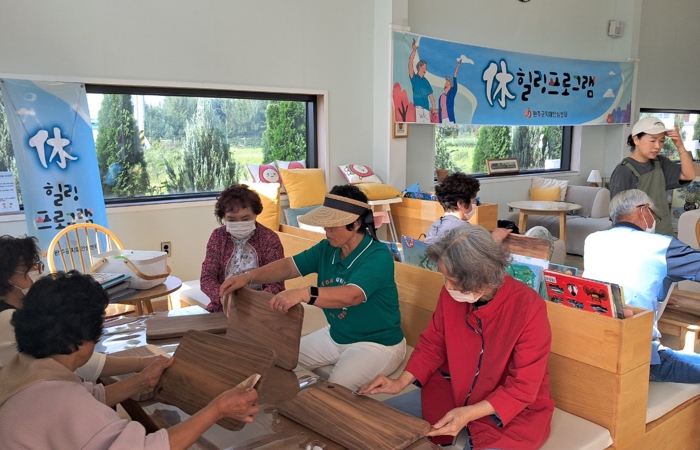 [메이저뉴스]완주군 치매안심센터가 최근 삼례읍의 한 체험카페에서 치매환자 가족들을 위한 ‘휴(休) 힐링 프로그램’을 열고 지친 마음을 보듬는 특별한 하루를 선사했다.