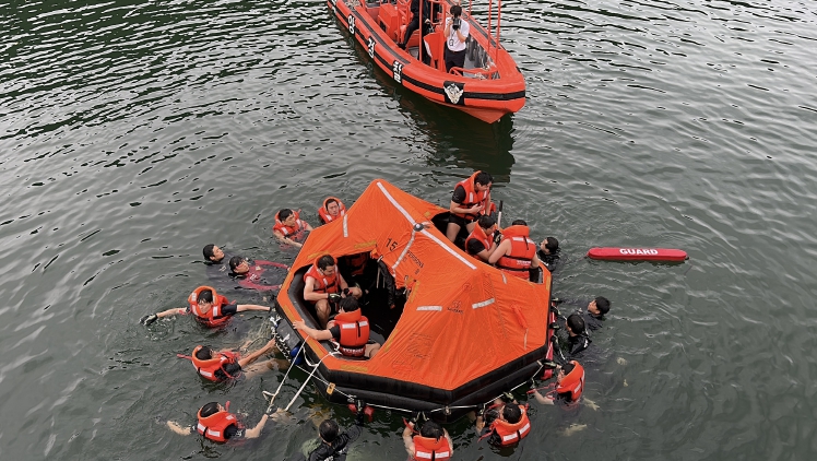| ▲ 현장 근무자 대상 팽창식 구명뗏목 운용 전문교육 |