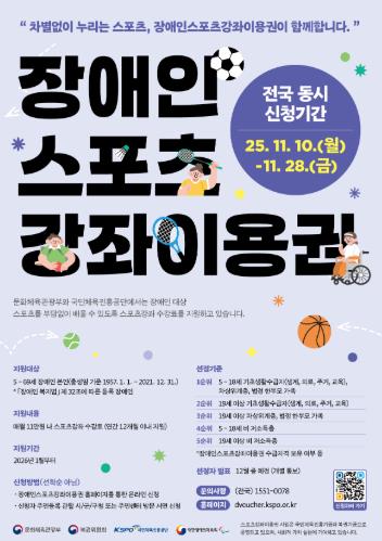 [메이저뉴스]여수시는 11월 10일부터 28일까지 ‘2026년도 장애인 및 유·청소년 스포츠강좌이용권’ 신청자를 모집한다.
