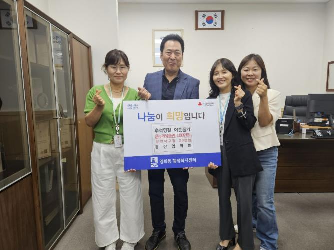 영화동 통장협의회는 명절마다 각각의 통장들이 뜻을 모아 이웃돕기에 참여하고 있으며 기부한 상품권은 취약계층 33세대에 전달할 예정이다.