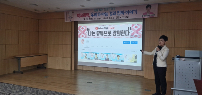 [메이저뉴스]김천시립도서관은 지난 11월 22일 김천시민을 대상으로 학교폭력에 대한 이해와 대응을 주제로 한 강연 ‘학교폭력, 우리가 아는 것과 진짜 이야기’를 성공적으로 마무리했다고 밝혔다.