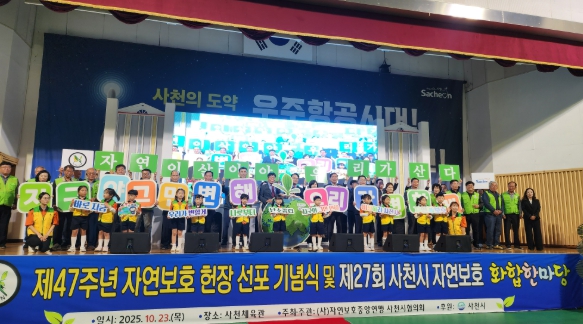[메이저뉴스]자연보호사천시협의회는 지난 10월 23일, 사천읍 사천체육관에서 ‘제47주년 자연보호헌장 선포 기념식 및 제27회 사천시 자연보호 화합한마당’ 행사를 성황리에 개최했다.