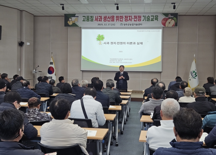 [메이저뉴스]성주군은 12월 17일, 농업기술센터 2층 대강당에서 관내 사과재배 농가 100여명을 대상으로『고품질 사과 생산을 위한 정지·전정 기술교육』을 실시했다.