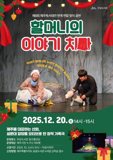 [메이저뉴스]제주시 우당도서관은 연말을 맞아 12월 20일 오후 2시 연극 ‘할머니의 이야기 치마’ 공연을 개최한다.