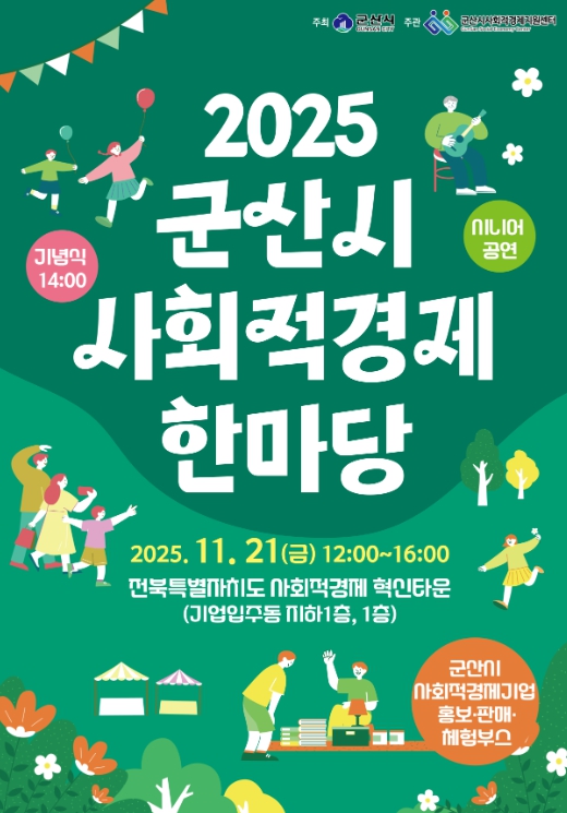 [메이저뉴스]군산시가 21일, 전북특별자치도 사회적경제 혁신타운(군산시 대학로 600)에서 ‘2025 군산시 사회적경제 한마당’을 개최한다.