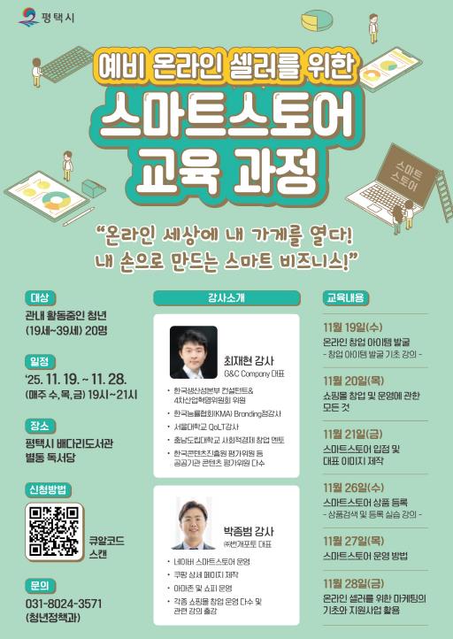 평택시 관계자는 “이번 교육 강좌는 청년들이 온라인 매장을 직접 기획하고 운영할 수 있는 기반을 마련하는 데 도움이 될 것”이라며, “이번 교육을 통해 청년들이 온라인 시장에 안정적으로 진입하고 성장할 수 있기를 기대한다. 앞으로도 미래 청년 최고경영자(CEO)들의 성공적인 사업 운영을 위해 적극 지원하겠다”라고 밝혔다.