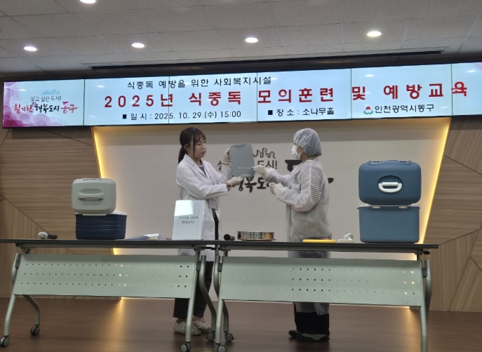 [메이저뉴스]인천 동구는 지난 29일 구청 소나무홀에서 식중독 대응 역량 강화를 위한 ‘식중독 발생 현장대응 모의훈련 및 식중독예방 특별교육’을 진행했다고 밝혔다.