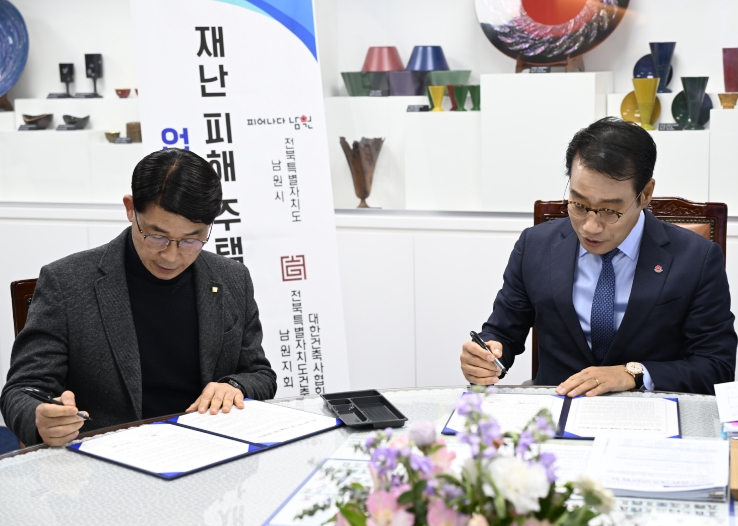 [메이저뉴스]남원시는 지난 1월 28일, 재난으로 주택 피해를 입은 주민의 신속한 주거 회복을 지원하기 위해 대한건축사회 남원시지회와 '재난 피해주택 신축 지원을 위한 업무협약'을 체결했다.