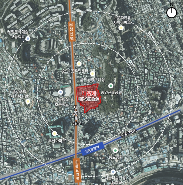 | ▲ 위치도 (종로구 숭인동 61번지 일대 모아타운) |