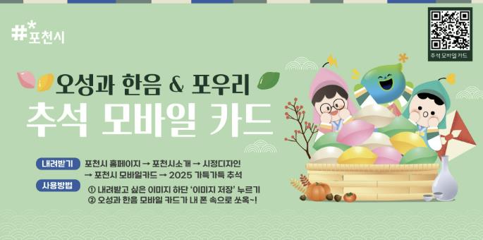 [메이저뉴스]포천시는 지난 1일 민족 최대 명절 추석을 맞아 시민들이 감사와 따뜻한 마음을 손쉽게 전할 수 있도록 ‘추석 모바일 카드’를 무료 배포했다.