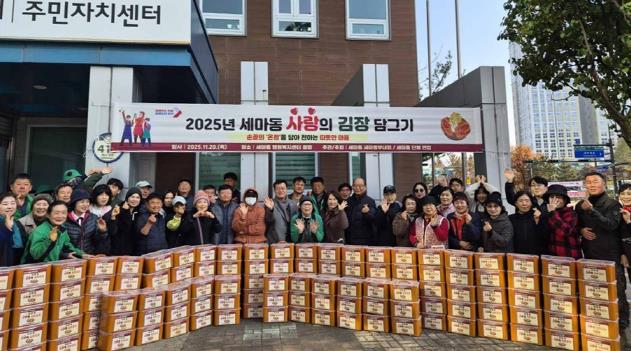 [메이저뉴스]오산시 세마동 행정복지센터는 세마동 단체연합이 11월 19일과 20일 이틀간 세마동 행정복지센터 1층 광장에서 지역 취약계층을 위한 ‘2025년 세마동 사랑의 김장담그기’ 행사를 따뜻한 분위기 속에서 진행했다고 밝혔다.