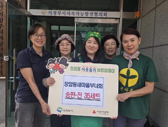 [메이저뉴스]의정부시 장암동주민센터는 9월 30일, 장암동 새마을부녀회가 추석 명절을 맞아 어려운 이웃을 위한 송편과 명절 음식을 정성껏 마련해 총 35세트를 기탁했다고 밝혔다.